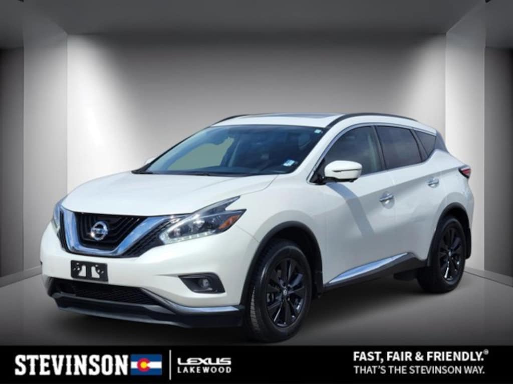 We Ship Nationwide!, This vehicle is equipped with the following options, Navigation, Sunroof/Moonroof, Murano SV, 4D Sport Utility, 3.5L V6 DOHC 24V, CVT with Xtronic, AWD, Pearl White, Graphite w/Cloth Seat Trim, 4-Wheel Disc Brakes, 6 Speakers, ABS brakes, Air Conditioning, Alloy wheels, AM/FM radio: SiriusXM, AM/FM/CD/MP3/WMA Audio System, Apple CarPlay/Android Auto, Auto-dimming Rear-View mirror, Automatic temperature control, Blind Spot Warning, BOSE Premium Audio System w/11 Speakers, Brake assist, Bumpers: body-color, Carpeted Floor Mats & Carpeted Cargo Mat, CD player, Child-Seat-Sensing Airbag, Cloth Seat Trim, Delay-off headlights, Driver door bin, Dual front impact airbags, Dual front side impact airbags, Electronic Stability Control, Four wheel independent suspension, Front Bucket Seats, Front Center Armrest, Front dual zone A/C, Front fog lights, Front reading lights, Fully automatic headlights, Garage door transmitter: HomeLink, Heated Front Bucket Seats, Heated Outside Mirrors, Illuminated entry, Intelligent Around View Monitor, Intelligent Cruise Control, Intelligent Drive Alertness (I-DA), Knee airbag, Low tire pressure warning, Navigation System, Occupant sensing airbag, Outside temperature display, Overhead console, Panic alarm, Passenger door bin, Passenger vanity mirror, Power door mirrors, Power driver seat, Power Panoramic Moonroof, Power passenger seat, Power steering, Power windows, Premium Package, Radio data system, Rear reading lights, Rear window defroster, Rear window wiper, Remote keyless entry, Roof rack: rails only, Security system, Speed-sensing steering, Speed-Sensitive Wipers, Split folding rear seat, Steering wheel mounted audio controls, Tachometer, Telescoping steering wheel, Tilt steering wheel, Traction control, Trip computer, Turn signal indicator mirrors, Variably intermittent wipers, Wheels: 18 Gunmetal Aluminum-Alloy, Wheels: 18 Machined Aluminum-Alloy.Stevinson Lexus is offering this. 2018 Nissan Murano SV 3.5L V6 DOHC 24V AWD Priced below KBB Fair Purchase Price!